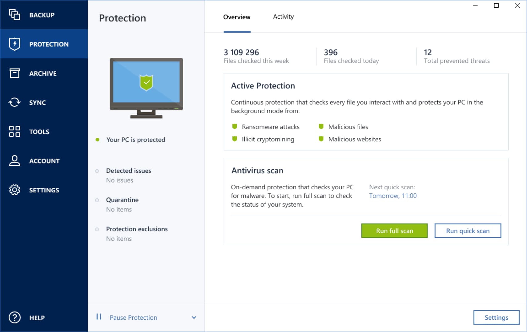 Przez ostatnie kilka lat Acronis True Image był jedynym rozwiązaniem dla użytkowników indywidualnych do tworzenia kopii zapasowych z wbudowanym oprogramowaniem antywirusowym, które powstrzymuje ataki w czasie rzeczywistym i automatycznie przywraca wszelkie pliki, których dotyczył problem.
