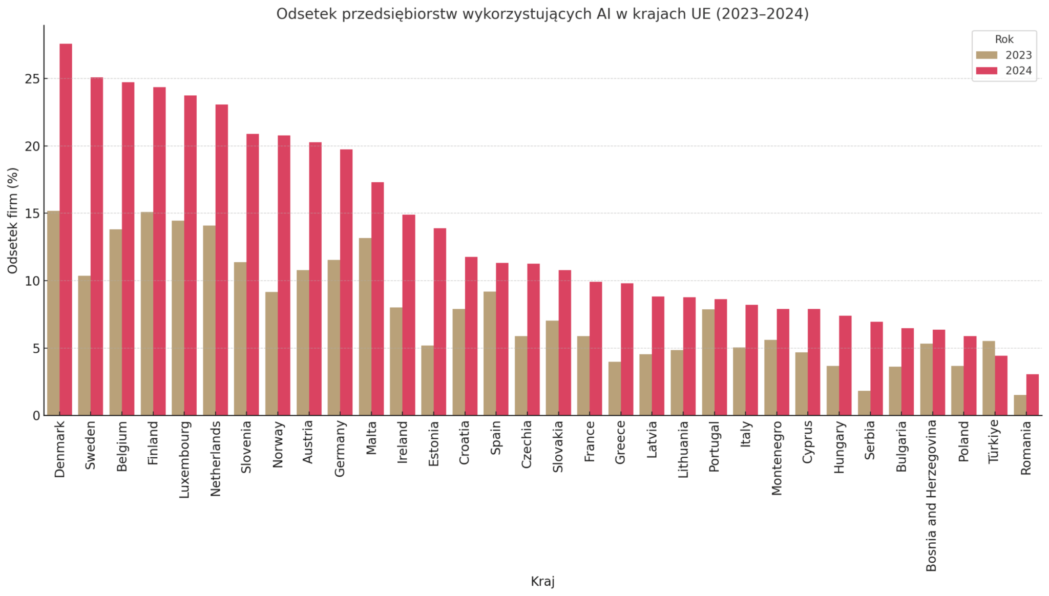 Adopcja AI w Europie dynamicznie przyspiesza, a wzrost rok do roku wskazuje na to, że technologia ta przestaje być nowinką – staje się fundamentem konkurencyjności gospodarczej, szczególnie w krajach północnych.