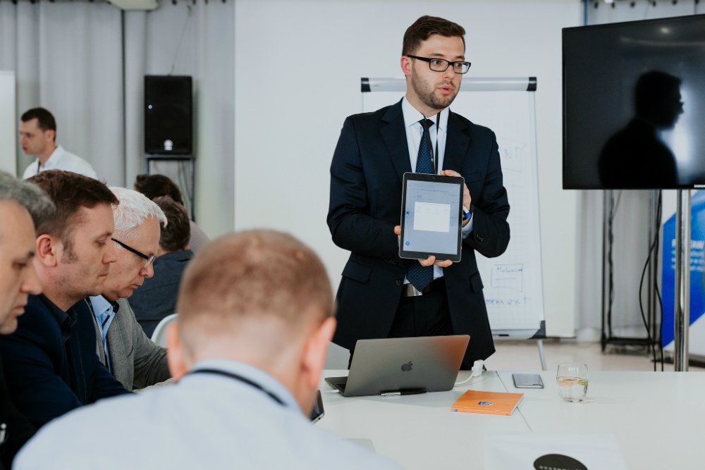 Pierwszy dzień warsztatów rozpoczęto od prezentacji eksperta – Pawła Nowakowskiego, który przybliżył uczestnikom możliwości i funkcje narzędzia Workspace ONE, integrującego zarządzanie aplikacjami i dostępem. Następnie Wojciech Gargul, zaprezentował działanie aplikacji Capriza, która pozwala w szybki i prosty sposób przenieść desktopowe aplikacje biznesowe na wersje mobilne. Część wykładową zamknęli swoim wystąpieniem na temat rozwiązania Cisco Spark – Aleksandra Trocka i Sebastian Makaruk. Podczas zajęć warsztatowych uczestnicy zostali podzieleni na 5-osobowe grupy. Pierwsza z nich realizowała wspólny projekt z wykorzystaniem narzędzia Cisco Spark i Sparkboard, które w innowacyjny sposób podnoszą jakość komunikacji w firmie. Kolejna grupa pracowała z rozwiązaniem Cisco Umbrella, czyli usługą chmurową zabezpieczającą przed zagrożeniami pochodzącymi z Internetu. Ostatni zespół poznawał system Workspace ONE firmy VMware, pozwalający m.in. na ujednolicenie zarządzania aplikacjami bez względu na ich rodzaj.
