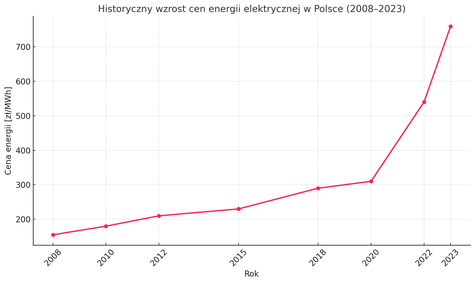 W ciągu ostatnich 15 lat ceny energii elektrycznej w Polsce wzrosły blisko pięciokrotnie, z 155 zł/MWh w 2008 roku do 759 zł/MWh w 2023 roku. Główną przyczyną tego znaczącego wzrostu był rosnący koszt wytwarzania energii w elektrowniach węglowych oraz dynamiczny wzrost cen uprawnień do emisji dwutlenku węgla (EU ETS), które w kwietniu 2023 roku osiągnęły około 90 euro/tCO₂, stabilizując się w kwietniu 2024 roku na poziomie 65 euro/tCO₂. Hurtowe ceny energii elektrycznej w Polsce, pomimo pewnej stabilizacji po gwałtownych wzrostach w latach 2022-2023, nadal utrzymują się na jednym z najwyższych poziomów w Europie. W drugim kwartale 2024 roku średnia cena energii elektrycznej w Polsce wyniosła około 390 zł/MWh, podczas gdy średnia europejska kształtowała się na poziomie 340 zł/MWh.