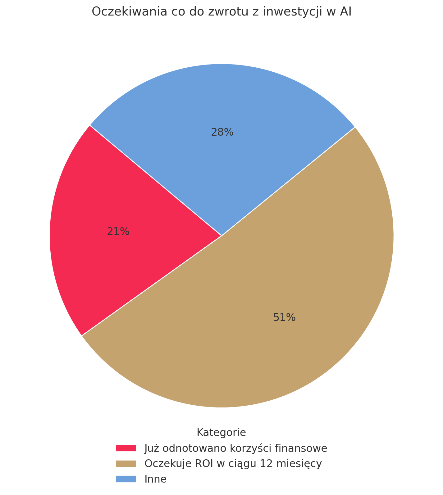 Ten dynamiczny wzrost zainteresowania na poziomie zarządu wywiera znaczną presję na szybkie wdrażanie rozwiązań AI i osiągnięcie wymiernych zwrotów z inwestycji. Aż 51% ankietowanych oczekuje zwrotu z inwestycji w AI w ciągu najbliższego roku, a 21% już odnotowało korzyści finansowe.