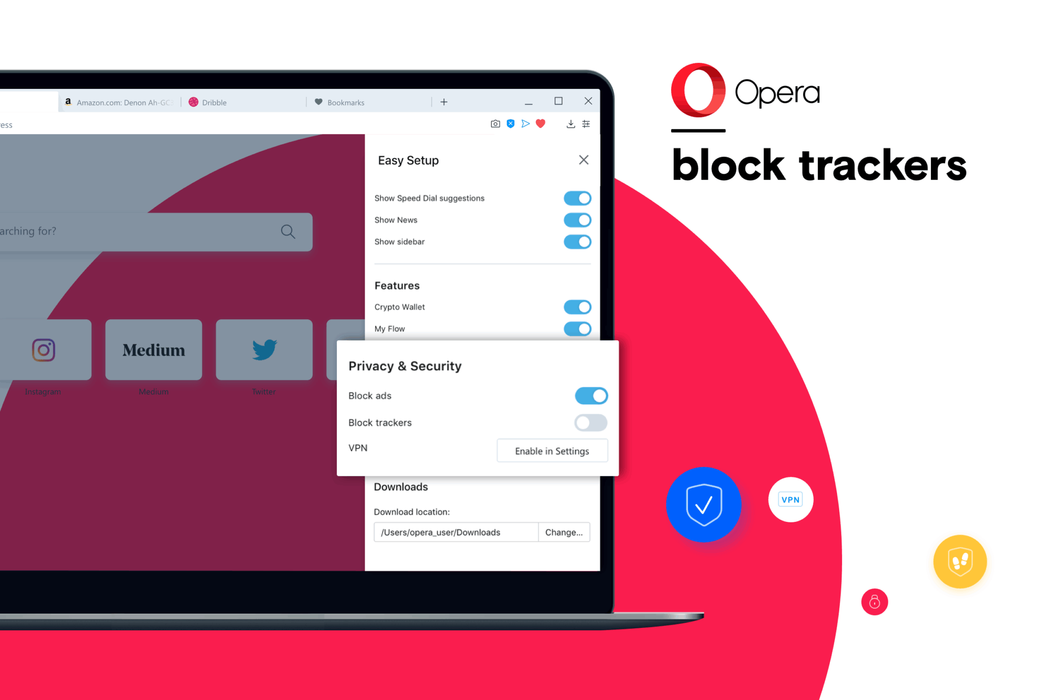 Przez cały dzień przeglądania Internetu natykamy się na setki tzw. trackerów, które zbierają informacje i śledzą nasze zachowanie w Internecie, pozostając dla nas niewidoczne. Skrypty śledzące spowalniają także twoją pracę, ponieważ powodują, że ładowanie witryn zajmuje więcej czasu. W swojej najnowszej wersji Opera umożliwia blokowanie skryptów śledzących, a w konsekwencji szybsze przeglądanie internetu.