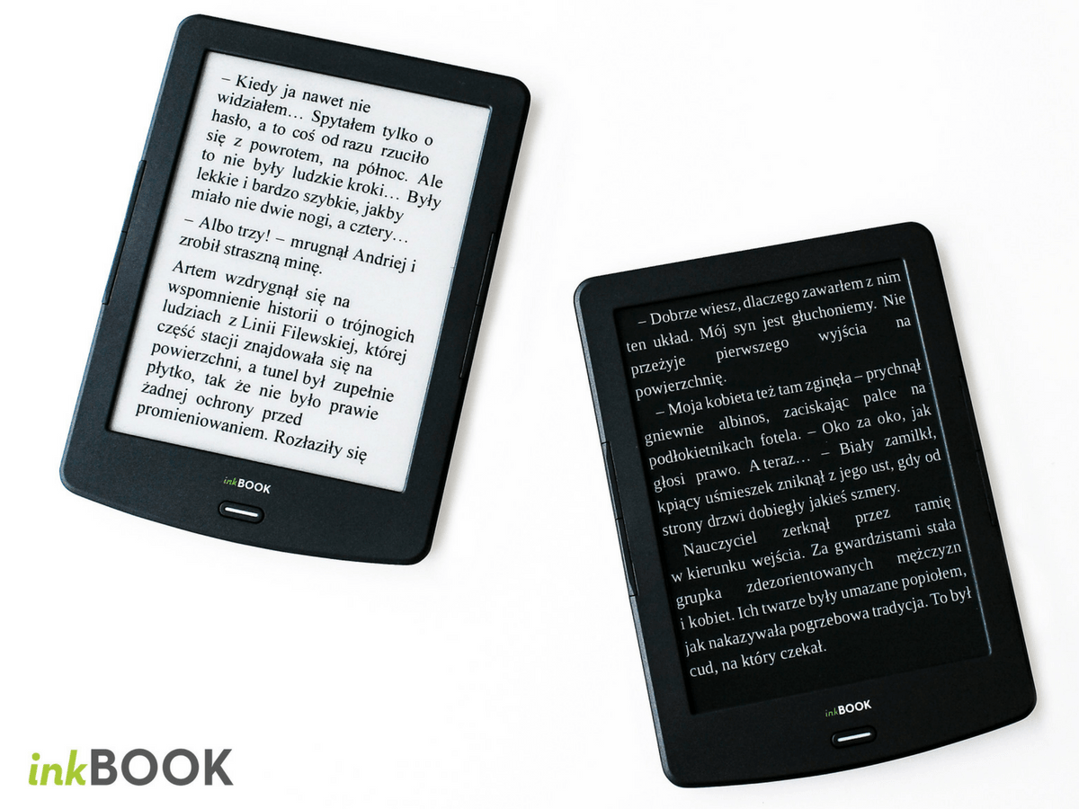 inkBOOKi to pierwsze czytniki e-booków zaprojektowane i rozwijane w Polsce. Dzięki zastosowaniu wyświetlaczy E Ink wykonanych w technologii e-papieru, czytanie jest wygodne i bezpieczne dla wzroku. Taki ekran nie odbija światła, dzięki czemu możemy komfortowo korzystać z czytnika również w warunkach pełnego nasłonecznienia. Z kolei doświetlenie ekranu, zastosowane w inkBOOK Prime, pozwala na czytanie po zmroku bez wspomagania dodatkowym światłem.