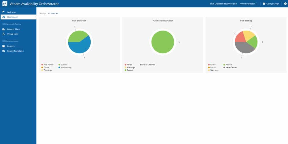 Nowe rozwiązanie Veeam Availability Orchestrator, zbudowane z myślą o dostępności klasy korporacyjnej, zapewnia mechanizm koordynacji DR dla replik Veeam Backup & Replication™. Skrupulatna koordynacja, tworzenie, dokumentowanie, testowanie i realizowanie planów DR – które są w pełni przygotowane do zatwierdzenia przez zarząd i interesariuszy – pomaga organizacjom ograniczyć czas, koszty i nakład pracy związanej ze skuteczną strategią DR, m.in. poprzez: