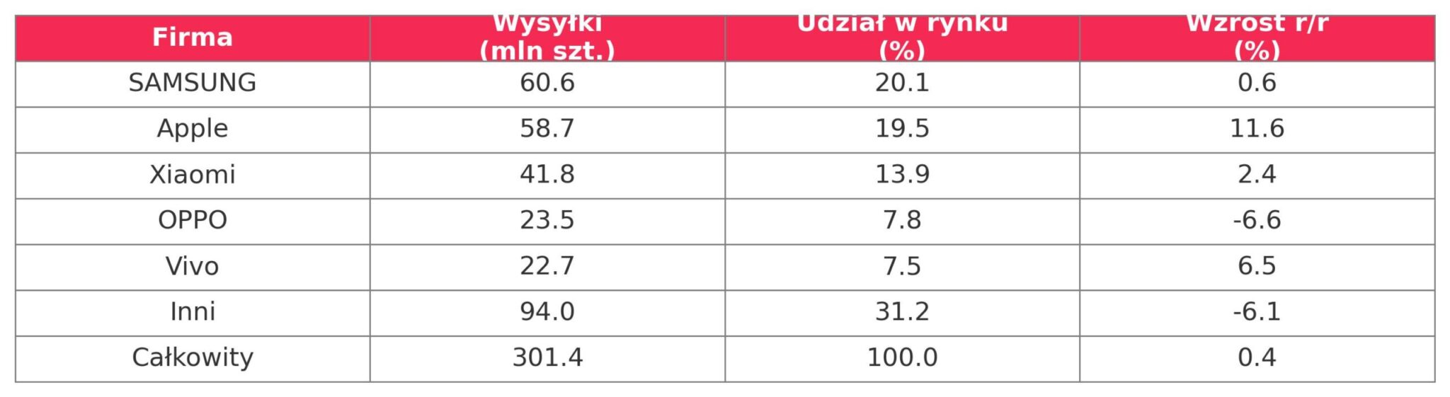Na szczycie utrzymał się Samsung, dzięki udanemu miksowi modeli premium i przystępnych cenowo urządzeń z AI. Apple miał rekordowy pierwszy kwartał pod względem wolumenu, głównie dzięki gromadzeniu zapasów – mniej dzięki realnemu popytowi. Co istotne, produkty z wyższej półki firmy z Cupertino nie kwalifikowały się do chińskich subsydiów, co odbiło się na jej wynikach w regionie.